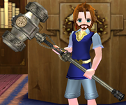 A two-handed hammer fashioned from a restored hammer said to have been wielded by a goddess in judgment of her foes. Despite its hulking size and the destructive power of which it is capable, both humans and Elves can wield it with ease.